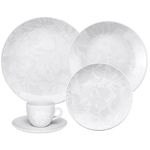 6 Pratos Rasos - 28 cm6 Pratos Fundos - 24 cm6 Pratos de Sobremesa - 21 cm6 Pires Chá - 16 cm6 Xícaras Chá - 200 mlAparelho de Jantar 30 Peças CoupBlanc Oxford - InformaçõesUso: Resistente a micro-ondas, resistente a lava-louçasMaterial: PorcelanaFormato: RedondoDecoração: Decoração floral na mesma corCor: Branco