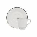 Uso: Não pode ser levado ao micro-ondas e lava-louçasMaterial: PorcelanaFormato: RedondoDecoração: Liso com filete em tinta prataCor: Branco