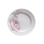Uso: Resistente a micro-ondas, Resistente a lava-louçasMaterial: PorcelanaFormato: RedondoDecoração: FloralCor: Branco e rosa claro