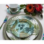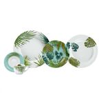 Aparelho de Jantar 30 Peças Patrícia Schmidt Uma mesa tropical e cheia de energia para melhorar o dia e ir além de todos os seus objetivos. É possível com a Porcelana Schmidt e a decoração lindíssima Patrícia. Al[em de simbolizar o meio ambiente, a cor verde significa "siga em frente". Um mix de vários tipos de folhagens em uma base verde fosca. Um toque de natureza dentro da sua casa! Aparelho de Jantar 30 Peças Patrícia Schmidt - Incluso 6 Pratos Rasos - 27 cm 6 Pratos Fundos - 23 cm 6 Pratos Sobremesas - 19 cm 6 Pires Chá - 14,5 cm 6 Xícaras Chá - 200 ml Aparelho de Jantar 30 Peças Patrícia Schmidt - Informações Uso: Resistente a micro-ondas, resistente a lava-louças Material: Porcelana Formato: Redondo Decoração: Tropical - folhagens Cor: Branco e verde