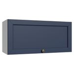 O acabamento de alta resistência da estrutura é em Branco e da porta em Azul. Possui uma textura suave ao toque, trazendo leveza e sofisticação ao ambiente. O destaque vai para os puxadores ponto em ouro envelhecido, feitos com metal resistente. Outro diferencial está no detalhe chanfrado das frentes, que forma molduras elegantes e dá profundidade ao design, refletindo o estilo americano com um toque moderno.