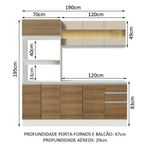Para completar, o acabamento é em Pintura Poliéster de alta resistência e fácil limpeza que confere beleza e praticidade. Disponível nas opções totalmente branca ou internamente branca e com as portas em crema e amadeirado Rustic com toque de madeira natural. As medidas totais são: 190 cm de largura e 195 cm de altura; profundidade de 47 cm nos balcões e paneleiro e de 29 cm nos aéreos.