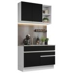 O acabamento da estrutura é branco e o das portas e frentes é preto. É feito em Pintura Poliéster ecológica, com aplicação de 7 camadas de proteção resistentes a álcool, água e calor.