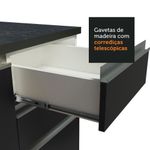 O acabamento da estrutura é branco fosco e as portas e frentes são em preto. É feito em Pintura Poliéster ecológica de alta resistência, que confere maior durabilidade e durabilidade ao móvel e oferece proteção contra os efeitos da água e do calor.