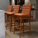 Entregando muita excelência, a Banqueta Alta Para Cozinha Sala de Jantar Fixa Mila B04 Couríssimo Camel - Lyam Decor é o complemento que faltava para deixar sua casa ainda mais extraordinária. Seu encosto com costura em padrão quadriculado e assento estofados, centralizam em si uma graciosidade estonteante, sem perder todo o seu conforto. A estrutura em madeira, na cor nozes, também é digna de notoriedade, por imprimir bastante personalidade a sua decoração. Vale ressaltar ainda, o apoio para os pés que garante maior segurança à mesma.