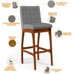Entregando muita excelência, a Banqueta Alta Para Cozinha Sala De Jantar Fixa Mila B04 Facto Cinza Fosco - Lyam Decor é o complemento que faltava para deixar sua casa ainda mais extraordinária. Seu encosto com costura em padrão quadriculado e assento estofados, centralizam em si uma graciosidade estonteante, sem perder todo o seu conforto. A estrutura em madeira, na cor nozes, também é digna de notoriedade, por imprimir bastante personalidade a sua decoração. Vale ressaltar ainda, o apoio para os pés que garante maior segurança à mesma.