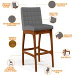 Entregando muita excelência, a Banqueta Alta Para Cozinha Sala de Jantar Fixa Mila B04 Suede Cinza - Lyam Decor é o complemento que faltava para deixar sua casa ainda mais extraordinária. Seu encosto com costura em padrão quadriculado e assento estofados, centralizam em si uma graciosidade estonteante, sem perder todo o seu conforto. A estrutura em madeira, na cor nozes, também é digna de notoriedade, por imprimir bastante personalidade a sua decoração. Vale ressaltar ainda, o apoio para os pés que garante maior segurança à mesma.