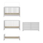 O conjunto é produzido em MDP (12/15mm) com acabamento acetinado (cerca de 20% de brilho), combinando beleza e resistência. Para tornar as noites de sono do pequeno tranquilas, o berço suporta até 35kg (50kg como minicama ou sofá). NÃO acompanha colchão (tamanho indicado: 130 x 60cm).