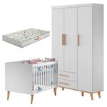 Berço Americano E Guarda Roupa Infantil Ludmila Branco Bétula Com Colchão Gazin - Carolina