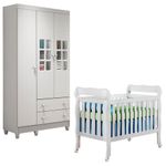 Berço Americano Lila E Guarda Roupa Mariah 3 Portas Branco Brilho - Carolina
