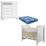 Berço Americano Mirelle Com Colchão Para Berço Americano E Cômoda Infantil Ternura Baby Branco Brilho - Incorplac