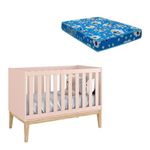 Berço Americano New Classic Rosa com Pés Madeira Natural e Colchão Ortobom – Reller