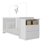 O Berço Cômoda para Colchão 60 x 130 cm Meu Bebê Multimóveis é produzido em MDP, que garante maior durabilidade e resistência, e possui acabamento acetinado (cerca de 20% de brilho). O berço é padrão (tamanho do colchão 1,30 x 0,60), possui 3 regulagens de altura para o colchão e acompanha suporte para mosquiteiro, que garante noites mais tranquilas de sono para o bebê. A cômoda acoplada (não é possível montar separadamente) possui 2 gavetas com corrediças metálicas, que proporcionam mais leveza no manuseio e um nicho para deixar o quartinho organizado. Berço Certificado pelo INMETRO sob o Selo n° 012251/2022. NÃO acompanha colchão.