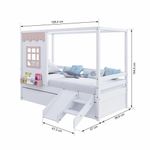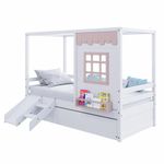 Bicama Casinha Reta Com Escorregador Madeira Maciça Branco/ Rosa Housin