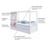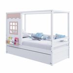 Bicama Casinha Reta Madeira Maciça Branco/ Rosa Housin