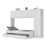 A Bicama de Solteiro com Colchão e Guarda-Roupas Dublin Multimóveis MP4036 é uma opção com excelente custo-benefício para deixar seu quarto completo. Produzidos em MDP, que garante maior durabilidade e resistência, possuem acabamento acetinado (cerca de 20% de brilho). O guarda-roupas possui 4 portas e 1 porta lateral com puxador em ABS, cabideiro (em madeira) e 3 prateleiras internas, contendo amplo espaço interno organizar roupas e acessórios. Versátil, a porta lateral pode ser montada dos dois lados do guarda-roupas - esquerdo ou direito. A cama de solteiro suporta até 90 kg e a cama auxiliar suporta até 60 kg. Acompanha colchões D23 com tratamento antiácaro e antialérgico que proporcionam noites de sono mais saudáveis e tranquilas.