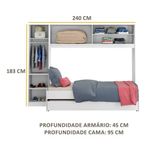 A Bicama com Guarda-Roupas para colchão 88 x 188 cm Multimóveis FG2691 é produzida em MDP com acabamento em pintura UV, oferecendo durabilidade e resistência. A bicama conta com barras em MDF e lastro em madeira, garantindo estabilidade e conforto durante o sono, suporta até 90kg na cama principal e até 60kg na cama auxiliar (possui rodízios que facilitam sua movimentação). Com puxadores em ABS e cabideiro metálico, o guarda-roupas conta com 1 porta lateral, 2 portas basculantes superiores e prateleiras internas, possuindo amplo espaço interno para acomodar roupas e acessórios e permitindo uma organização impecável para o seu quarto. Versátil, a porta lateral pode ser montada dos dois lados - esquerdo ou direito. Com um design moderno e funcionalidade ímpar, este conjunto é ideal para quem busca praticidade e estilo. NÃO acompanha colchões (tamanho indicado dos colchões: Principal - 188 x 88 cm | Auxiliar - 188 x 78 cm).Conteúdo da Embalagem: