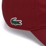 - Detalhamento: Boné com seis gomos não estruturados, aplicação de ihóses com acabamento bordado, logo emborrachado Lacoste aplicado na lateral direita, fechamento strapback ajustável em velcro, aba flexível;