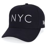 - Detalhamento: Composto por cinco gomos com aplicação de ilhós, sendo o frontal estruturado e com acabamento bordado, bordado frontal com as letras "NYC" na cor branca, logo da New Era em uma das laterais, aba curva, fecho traseiro snapback ajustável;