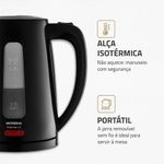 CAPACIDADE: 1,7 LITROS A chaleira elétrica Mondial aquece a água em poucos minutos e prepara até 7 xícaras de chá de uma vez!