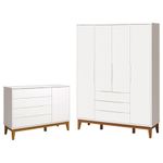 Cômoda com Porta e Guarda Roupa Infantil Classic Elfe Branco Acetinado Amadeirado - Reller