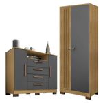 Comôda Madri Com Armário Multiuso Versátile Carvalho Americano Grafite - Incorplac