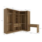 Conjunto Closet Kappesberg Adapt Nogueira 4 Peças 263cm X 235cmPara quem sempre quis o quarto dos sonhos, a Linha Closets do Modulado Adapt da Kappesberg é a escolha certa. Com quatro peças, o combo CB1144 é produzido em MDP de 15mm, o que proporciona mais robustez, firmeza e qualidade, o modelo closet é ideal para quem ama espaços abertos e funcionais sem abrir mão da organização. Espaçoso e muito versátil, o combo é indispensável em todas as composições, principalmente nas de canto, aproveitando cada espaço, e com medida de 2,30m de altura, as divisões internas dos módulos contam com nichos de tamanhos diferentes, ideais para calçados e roupas dobradas, já os cabideiros, metálicos e de suporte interno, são perfeitos para organizar peças maiores, como casacos e vestidos sem amassar. E nas gavetas, com corrediças telescópicas, você otimiza espaço e organiza acessórios e peças menores. Suassete camadas de pintura na cor nogueira, tanto na parte interna quanto naexterna, possuem acabamento touch, com a textura dos veios da madeira, e além decombinar com todos os ambientes, garante a sensação de conforto e aconchego aoespaço, remetendo aos tons da natureza e deixando seu quarto perfeito. O diferencial fica por conta da sua montagem interna ajustável, podendo ampliar a quantidade de gavetas e prateleiras, deixando-o do seu jeito, além de contar com escrivaninha, tornando seu espaço completo e ainda mais especial. Renove seu quarto com toda a qualidade e beleza que a Linha Closets do Modulado Adapt da Kappesberg oferece e aproveite cada momento.Informações importantes:As imagens são meramente ilustrativas, não acompanha acessórios;Pode haver variação de cor de acordo com a calibragem da tela onde o produto está sendo visualizado;Todos nossos móveis são entregues desmontados;A montagem é sempre por conta do cliente (orientamos a contratação de um profissional qualificado, o manual de montagem acompanha o produto);O vídeo do produto pode ser genérico, então atente-se às imagens do anúncio para optar pela cor/modelo.Compõe o conjunto 4 peças:1x Guarda-Roupa Sem Portas Closet 2 Gavetas Kappesberg Adapt Nogueira 158cm;1x Guarda-Roupa de Canto Closet Sem Portas Kappesberg Adapt Nogueira 105cm;1x Guarda-Roupa Sem Portas Closet Kappesberg Adapt Nogueira 25cm;1x Escrivaninha 2 Gavetas Kappesberg Adapt Nogueira 105cm;*Obs.: Não acompanha cama, colchão, acessórios, decorações e periféricos;Largura A: 263cm / B:130cm.Acabamento: Pintura Touch | Acabamento da Fita Borda: Papel | Cabideiro: Metálicos | Cor: Nogueira | Corrediças: Telescópicas | Dobradiça: Com Amortecimento / Sem Amortecimento | Garantia: 3 meses para defeito de fabricação | Gavetas: Internas | Matéria-prima: MDP | Peso suportado por cabideiro: 10 Kg | Peso suportado por cada prateleira: 7 kg | Peso suportado por gaveta: 6 kg | Quantidade de calceiros: 2 | Quantidade de gavetas: 1 / 2 | Quantidade de prateleiras: 5 / 6 | Sistema de montagem: Parafuso Philips / Parafuso Philips e Minifix