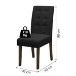 A Esplanada Móveis se responsabiliza pela dos produtos adquiridos até a porta de entrada ou portaria do endereço indicado, se a portaria do condomínio permitir, as s são efetuadas no piso térreo e é de responsabilidade do cliente a locomoção da mercadoria até seu apartamento ou casa. MEDIDAS:: [ A ] = 98 cm [ L ] = 42 cm [ P ] = 63 cm | PESO CADEIRA:: 7,50 KG | PESO SUPORTADO CADEIRA:: 110 kg | MODELO:: DUBAI | MARCA:: Dobuê | COR DA CADEIRA:: Estrutura: Castanho / Assento: Preto | ESTRUTURA:: MDF 25 mm | ACABAMENTO:: Pintura UV | TECIDO DA CADEIRA:: Veloplus | REVESTIMENTO INTERIOR CADEIRA:: Espuma D20 assento e D13 Encosto | SAPATAS:: Plásticas | DIFERENCIAL:: Acabamento costura matelassê | ITENS INCLUSOS:: 4 cadeiras | GARANTIA:: 3 meses pelo fabricante Cor: Cas/PtoTex