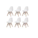 Conjunto De Mesa De Jantar Eames Eiffel Redonda 100cm Tampo De Madeira Branco Com 6 Cadeiras Brancas