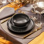 Conjunto de Pratos Rasos 06 Peças Flat Ônix OxfordInspirados na vertente do design biofílico que busca conectar as pessoas com os benefícios da presença da natureza em ambientes e na criação de produtos, apresentamos a coleção Flat. Com inspiração natural, trazemos seus elementos mais representativos para um dia a dia mais tranquilo e repleto de bem-estar. Os pratos da linha Flat oferecem uma área maior de uso tornando-se uma opção adequada para empratamentos criativos, além de proporcionarem mais conforto na hora de usar. Com formas retas e funcionais, as peças da linha são fáceis de armazenar até mesmo em armários mais compactos. Com inspiração na natureza, a decoração Ônix possui acabamento acetinado na cor preta, assim como a pedra que dá nome à decoração. Linhas em alto relevo saem do centro dos pratos até as extremidades simbolizando as ramificações presentes na pedra conhecida pela proteção e afastamento de energias negativas. Conjunto é composto por 6 pratos rasos.Conjunto de Pratos Rasos 06 Peças Flat Ônix Oxford - Incluso6 Pratos Rasos - 26 cmConjunto de Pratos Rasos 06 Peças Flat Ônix Oxford - InformaçõesUso: Resistente a micro-ondas, resistente a lava-louçasMaterial: CerâmicaFormato: RedondoDecoração: Fat ÔnixCor: Preto