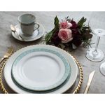 Conjunto de Xícara de Chá com Pires 06 Peças Audrey Schmidt A decoração que recebe o nome da atriz Audrey Hepburn reproduz seus belos detalhes na cor verde água, símbolo da joalheria Tiffany. A decoração é um exemplo de requinte e charme que pode elevar a importância dos encontros e celebrações em família. Conjunto de Xícara de Chá com Pires 06 Peças Audrey Schmidt - Incluso 6 Pires Chá - 15 cm 6 Xícaras Chá - 200 ml Conjunto de Xícara de Chá com Pires 06 Peças Audrey Schmidt - Informações Uso: Não pode ser levado ao micro-ondas e na lava-louças Material: Porcelana Formato: Redondo Decoração: Linhas e arabescos com filete em tinta ouro Cor: Verde água