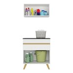 O Conjunto Lavanderia Multiuso Armário e Balcão Multimóveis MP5016 tem um excelente custo benefício e um amplo espaço interno. Produzido em MDP com acabamento acetinado (cerca de 20% de brilho), que garante maior durabilidade e resistência, o balcão possui uma porta e uma gaveta com corrediças metálicas (mais leveza no manuseio), pés retrô em polipropileno, que deixam o ambiente mais estiloso, puxadores em ABS e tampo em MDP 15mm com pintura de alta resistência. O armário aéreo possui porta basculante.