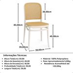 Especificações Técnicas:> Material do Tampo da Mesa: MDF Laqueado> Material da Estrutura da Mesa: Madeira e Metal> Material da Cadeira: 100% Polipropileno