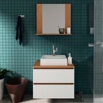 Conjunto Para Banheiro 03 Peças. Com design prático e funcional, estas peças ao ambiente toques de modernidade e elegância. Possuem estruta em MDP de 15mm, e acabamento em pintura UV/BP. Composto por 02 gavetas com corrediças metálicas, 01 prateleira ideal para deixar seus itens mais utilizados sempre a mão. Cuba em mármore sintético e acabamento Brilho Polido, esta Cuba já vai com furação para intalação da torneira (torneira não inclusa). O mármore sintético combina alta resistência ao impacto e baixa porosidade, proporcionando maior impermeabilidade a manchas, o que garante a resistência e vitalidade do produto. Este conjunto é uma ótima escolha para manter seus produtos de higiene e beleza sempre organizados. Estes produtos chegarão na sua casa separados em 03 volumes.