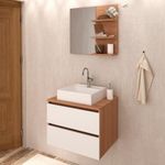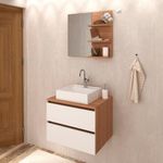 Conjunto Para Banheiro 03 Peças. Com design prático e funcional, estas peças ao ambiente toques de modernidade e elegância. Possuem estruta em MDP de 15mm, e acabamento em pintura UV/BP. Composto por 02 gavetas com corrediças metálicas, 03 prateleiras para deixar seus itens mais utilizados sempre a mão. Cuba em mármore sintético e acabamento Brilho Polido, esta Cuba já vai com furação para intalação da torneira (torneira não inclusa). O mármore sintético combina alta resistência ao impacto e baixa porosidade, proporcionando maior impermeabilidade a manchas, o que garante a resistência e vitalidade do produto. Este conjunto é uma ótima escolha para manter seus produtos de higiene e beleza sempre organizados. Estes produtos chegarão na sua casa separados em 03 volumes.