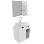 Conjunto Para Banheiro 03 Peças. Com design prático e funcional, estas peças entrega ao ambiente toques de modernidade e elegância. Possuem estruta em MDP de 15mm, e acabamento em pintura UV/BP. Composto por 01 porta com dobradiças metálicas e nichos internos e externos, espelho ja fixado no painel, 01 gaveta com corrediças metálicas para tornar mais pratica sua rotina. Cuba em mármore sintético e acabamento Brilho Polido, esta Cuba já vai com furação para intalação da torneira (torneira não inclusa). O mármore sintético combina alta resistência ao impacto e baixa porosidade, proporcionando maior impermeabilidade a manchas, o que garante a resistência e vitalidade do produto. Este conjunto é uma ótima escolha para manter seus produtos de higiene e beleza sempre organizados. Estes produtos chegarão na sua casa separados em 03 volumes.