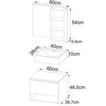 Alt 54 cm x Larg 60 cm x Prof 15,6 cm