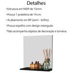 90 dias para eventuais defeitos de fabricação. Produto: 01 Cuba 01 Gabinete 01 Espelheira | Material: Madeira | Tonalidade: Multicolorido | Profundidade: 38,70 Cor: Preto