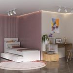 O Conjunto Quarto Bicama com Colchão e Baú/Escrivaninha Multimóveis MP4224 é ideal para criar um design moderno em seu ambiente. A escrivaninha é produzida em MDP com acabamento acetinado (cerca de 20% de brilho), que garante maior durabilidade e resistência, além de um acabamento superior. Prática e funcional, possui uma gaveta com corrediças metálicas (mais leveza no manuseio), 3 prateleiras para manter o seu ambiente organizado e um tampo espaçoso para equipamentos e materiais de trabalho (suporta até 17 Kg). Já a bicama solteiro para colchão 188x78cm, é produzida em MDP com acabamento em pintura UV Premium de alta resistência. Possui um baú embutido com um amplo espaço para acomodar as roupas de cama e outros pertences, deixando o seu ambiente organizado. Bicama suporta até 100kg cama pricipal / 70kg cama auxiliar e acompanha colchões D23 com tratamento antiácaro e antialérgico que proporcionam noites de sono mais tranquilas e saudáveis.