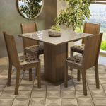 Já as cadeiras são resistentes e duráveis, fabricadas em MDF e MDP. Possuem assento estofado em tecido Floral Bege Marrom, com toque suave e macio, proporcionando uma experiência agradável durante as refeições.