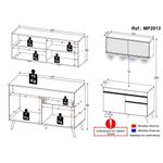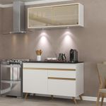 Altura: 203cm | Largura: 120cm | Profundidade: 31cm (aéreos) - 53cm (balcão com tampo)