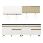 A Cozinha Compacta 4 peças com Leds MP2021 Veneza Up Multimóveis tem um excelente custo benefício e um amplo espaço interno. Produzida em MDP com acabamento acetinado (cerca de 20% de brilho), que garante maior durabilidade e resistência, possui corrediças metálicas (mais leveza no manuseio), pés retrô em polipropileno, que deixam o ambiente mais estiloso, puxadores em ABS e tampo em MDP 15mm com pintura de alta resistência. Os módulos são individuais e você pode montar da maneira que se adaptar melhor ao seu ambiente. O balcão possui tampo removível ( com pia de 120 cm). Para deixar sua cozinha mais bonita e organizada, possui vidro reflecta e compartimento especial para utensílios mais altos. As luminárias em LED, que acompanham a cozinha, proporcionam um visual mais bonito e moderno, deixando o ambiente aconchegante e confortável. Com design minimalista e de fácil instalação, você pode escolher em qual lugar do móvel deseja fixar. Com luz brilhante, as luminárias funcionam com 3 pilhas AAA.