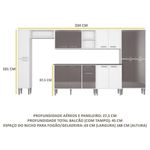Cozinha: Altura: 191 cm - Largura: 334 cm - Profundidade: 27,5 cm (aéreos e paneleiro) - 45 cm (balcão com tampo)