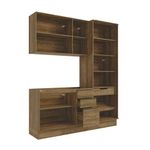Informações importantes:As imagens são meramente ilustrativas, não acompanha acessórios;Pode haver variação de cor de acordo com a calibragem da tela onde o produto está sendo visualizado;Todos nossos móveis são entregues desmontados;A montagem é sempre por conta do cliente (orientamos a contratação de um qualificado, o manual de montagem acompanha o produto);O vídeo do produto pode ser genérico, então atente-se às imagens do anúncio para optar pela cor/modelo.Características:Material em MDF de 15mm de espessura, com tampos em MDP;Puxadores de metal na cor dourado;Corrediças telescópicas;O rodapé possui 16 centímetros de altura;Rodapés, 7 portas e 3 Gavetas.Dimensões:Largura: 192cm;Altura do Balcão: 88cm;Profundidade Inferior: 52cm / Superior: 37cm.Acabamento: Pintura Touch | Cor: Nogueira | Corrediças: Telescópicas | Dobradiça: Com Amortecimento | Garantia: 3 meses para defeito de fabricação | Matéria-prima: MDF / MDF/ Vidro | Peso suportado por cada gaveta: 6 Kg | Peso suportado por cada prateleira: 7 kg | Puxadores: Metálicos / Puxadores de Metal e de Alumínio | Quantidade de gavetas: 1 / 3 | Quantidade de portas: 2 / 3 | Quantidade de prateleiras: 1 / 2 / 5 | Sistema de montagem: Parafuso Philips | Tipo de porta: Bater | Tipo de móveis de cozinha: Cozinha completa