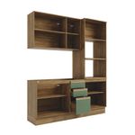 Complete sua cozinha com toda a beleza e praticidade que o Combo CB1299 da Cozinha Celeste da Kappesberg oferece. Compacto e funcional, ele conta com as divisórias perfeitas para manter seu espaço sempre organizado. Produzida em MDF de 15mm, o que proporciona robustez, firmeza e qualidade, além de um acabamento perfeito, o combo possui três peças, encaixando facilmente em todos os ambientes. Com até sete camadas de pintura, a caixaria é em pintura touch na cor nogueira, com a textura dos veios da madeira, enquanto as frentes são na cor verde oliva com acabamento fosco. Uma combinação moderna e aconchegante, remetendo aos tons da natureza e trazendo frescor e elegância ao ambiente, perfeita para preparar receitas e receber sua família e amigos. Com módulo para eletrodomésticos, o kit forno e microondas possui prateleiras reforçadas em 25mm, garantindo o máximo de segurança. Com três peças, o conjunto possui 2,30m de altura e 1,92m de largura, uma ótima opção para quem possui pouco espaço mas não abre mão de organização. E para um melhor acabamento, o combo possui pés, mas acompanha as ferragens para ser montado suspenso na parede, deixando sua cozinha do seu jeito. Os diferenciais ficam por conta das dobradiças com amortecimento, garantindo um fechamento suave e sem ruídos, das corrediças telescópicas e os puxadores na cor dourada, com modelos diferentes no balcão e aéreos, completando o estilo e a qualidade do produto. Viva momentos especiais e renove seu espaço com a Cozinha Celeste da Kappesberg.Informações importantes:As imagens são meramente ilustrativas, não acompanha acessórios;Pode haver variação de cor de acordo com a calibragem da tela onde o produto está sendo visualizado;Todos nossos móveis são entregues desmontados;A montagem é sempre por conta do cliente (orientamos a contratação de um profissional qualificado, o manual de montagem acompanha o produto);O vídeo do produto pode ser genérico, então atente-se às imagens do anúncio para optar pela cor/modelo.Características:Material em MDF de 15mm de espessura, com tampos em MDP;Puxadores de metal na cor dourado;Corrediças telescópicas;O rodapé possui 16 centímetros de altura;Rodapés, 9 portas e 3 Gavetas.Dimensões:Largura: 190cm;Altura do Balcão: 88cm;Profundidade Inferior: 52cm / Superior: 37cm. Acabamento: Pintura Fosco / Pintura Touch | Cor: Nogueira/Verde Oliva | Corrediças: Telescópicas | Dobradiça: Com Amortecimento | Garantia: 3 meses para defeito de fabricação | Matéria-prima: MDF | Peso suportado por cada gaveta: 6 Kg | Peso suportado por cada prateleira: 7 kg | Puxadores: Metálicos / Puxadores de Metal e de Alumínio | Quantidade de gavetas: 3 | Quantidade de portas: 3 | Quantidade de prateleiras: 1 / 2 / 4 | Sistema de montagem: Parafuso Philips | Tipo de porta: Bater | Tipo de móveis de cozinha: Cozinha completa | Tipo de garantia: Garantia do fabricante | Duração da garantia: 3 meses | Montagem: Necessita montagem