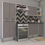 A Cozinha Completa Compacta com Armário e Balcão com Tampo Coimbra Multimóveis tem um excelente custo benefício e um amplo espaço interno. Os módulos são individuais e você pode montar da maneira que se adaptar melhor ao seu ambiente. Produzida em MDP, que garante maior durabilidade e resistência, conta com corrediças telescópicas em aço (maior durabilidade e travas de segurança para evitar acidentes), pés com regulagem de altura (permitem um perfeito nivelamento dos módulos), puxadores em ABS com acabamento cromado e tampos em MDP 15mm com pintura de alta resistência. Para deixar sua cozinha mais bonita e organizada, possui compartimento especial para utensílios mais altos e módulo aéreo com nichos. As portas embutidas proporcionam um visual de cozinha planejada.