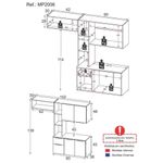 Altura: 138cm | Largura: 152cm | Profundidade: 30cm (aéreos) - 38cm (balcão com tampo)