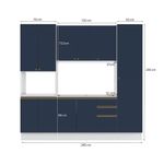 Perfeito para quem gosta de beleza sem abrir mão de praticidade, o Combo CB1301 da Cozinha Celeste da Kappesberg é a escolha ideal. Compacto e funcional, ele conta com as divisórias perfeitas para deixar tudo organizado. Produzido em MDF de 15mm, o que garante robustez, firmeza e qualidade, além de um acabamento perfeito, o combo encaixa em todos os ambinetes, facilitando as tarefas do dia a dia. Com até sete camadas de pintura, a caixaria é em pintura na cor branca e acabamento brilho, enquanto as frentes são na cor azul profundo com acabamento fosco. Uma combinação marcante e moderna, perfeita para quem busca por design e estilo em cada detalhe, deixando sua cozinha com um diferencial único. Com módulo para eletrodomésticos, o kit forno ou microondas possui prateleiras reforçadas em 25mm, garantindo o máximo de segurança. Medindo 2,30m de altura e 2,40m de largura, é uma ótima opção para quem possui pouco espaço e não abre mão de versatilidade. E para um melhor acabamento, o combo possui pés, mas acompanha as ferragens para ser montado suspenso na parede, deixando sua cozinha do seu jeito. Os diferenciais ficam por conta das dobradiças com amortecimento, garantindo um fechamento suave e sem ruídos, das corrediças telescópicas e os puxadores na cor dourada, com modelos diferentes no balcão e aéreos, completando o estilo e a qualidade do produto. Viva momentos especiais e renove seu espaço com a Cozinha Celeste da Kappesberg.Informações importantes:As imagens são meramente ilustrativas, não acompanha acessórios;Pode haver variação de cor de acordo com a calibragem da tela onde o produto está sendo visualizado;Todos nossos móveis são entregues desmontados;A montagem é sempre por conta do cliente (orientamos a contratação de um qualificado, o manual de montagem acompanha o produto);O vídeo do produto pode ser genérico, então atente-se às imagens do anúncio para optar pela cor/modelo;Características:Material em MDF de 15mm de espessura, com tampos em MDP;Puxadores de metal na cor dourado;Corrediças telescópicas;O rodapé possui 16 centímetros de altura;Rodapés, 10 portas e 3 Gavetas.Dimensões:Largura: 240cm;Altura do Balcão: 88cm;Profundidade Inferior: 52cm / Superior: 37cm. Acabamento: Pintura Brilho / Pintura Fosco | Cor: Branco/Azul Profundo | Corrediças: Telescópicas | Dobradiça: Com Amortecimento | Garantia: 3 meses para defeito de fabricação | Matéria-prima: MDF | Peso suportado por cada gaveta: 6 Kg | Peso suportado por cada prateleira: 7 kg | Puxadores: Metálicos / Puxadores de Metal e de Alumínio | Quantidade de gavetas: 3 | Quantidade de portas: 3 | Quantidade de prateleiras: 1 / 2 / 4 / 5 | Sistema de montagem: Parafuso Philips | Tipo de porta: Bater | Tipo de móveis de cozinha: Cozinha completa | Montagem: Necessita montagem | Tipo de garantia: Garantia do fabricante | Duração da garantia: 3 meses