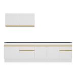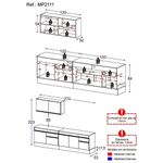 Altura: 203cm | Largura: 270cm | Profundidade: 32cm (aéreos) - 53cm (balcão com tampo)
