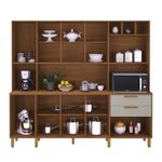 Design moderno e funcional para sua cozinhaO Armário de Cozinha Compacta Gramado Indekes possui 219cm de largura, garantindo espaço suficiente para organizar seus utensílios. Com capacidade para acomodar até dois fornos ou micro-ondas de até 44 litros, o móvel se adapta às necessidades das maiores marcas. Suas nove portas incluem dois modelos frisados, com um acabamento que remete ao ripado, além de uma porta basculante posicionada abaixo das gavetas. As duas gavetas amplas contam com corrediças telescópicas para maior suavidade no manuseio, sendo que uma delas possui divisor de talheres feito no mesmo material do móvel.Detalhes que destacam o ambienteO design com portas e gavetas embutidas confere um visual arrojado e moderno à sua cozinha, enquanto os puxadores em MDF revestidos de melamina adicionam sofisticação e durabilidade. O móvel também conta com nichos práticos para decoração ou armazenamento de garrafas, além de um tampo amplo e resistente, feito em MDP de 25 mm, ideal para manter utensílios à mão. As prateleiras internas proporcionam excelente aproveitamento do espaço, garantindo organização em cada detalhe.Durabilidade e versatilidade para o dia a diaProjetado com pés quadrados ajustáveis, a Cozinha Compacta Indekes oferece estabilidade e facilidade de nivelamento em qualquer tipo de piso. Sua estrutura de 15 mm assegura robustez e longevidade, aliada a acessórios de alta qualidade. Com um design funcional e versátil, este armário é a escolha perfeita para compor ambientes modernos, oferecendo excelente custo-benefício e praticidade para o dia a dia.